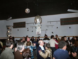 Pendurada no tecto do salão do CRC Ronqueira, lá esta ela... a principal atracção do baile - A Pinha. Estava mesmo linda, toda enfeitada, com as fitas coloridas por baixo. Os curiosos espreitavam... tentando adivinhar qual seria a que abria a pinha.